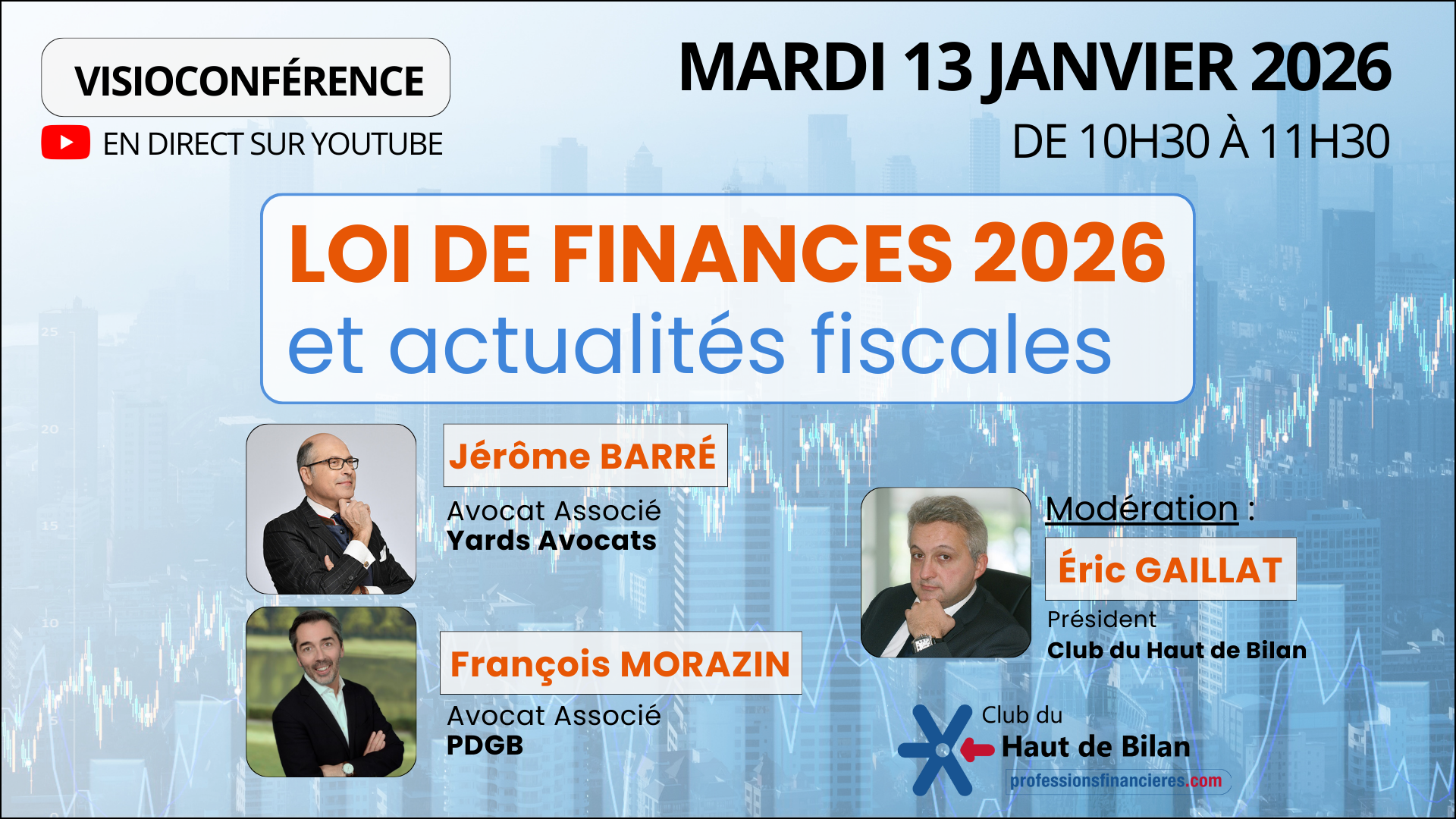Le Centre des Professions Financières et son Club du Haut de Bilan sont heureux de vous convier à leur prochaine visioconférence, mardi 13 janvier 2026 à 10h30, sur le thème :